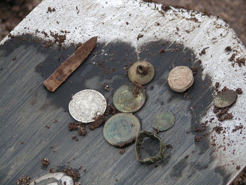 Сегодня день выдался посуше и можно сказать, удача нам улыбалась... на одном из выбитых мест.. попались вот такие вот зачётные находки, тут и убитая медь... но и серебряшку удалось выудить.... 6 грошевик.. попалось такое интересное колечко... с гербом в виде щита, если не ошибаюсь..