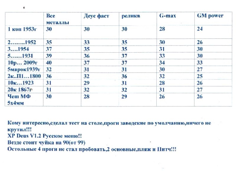 Сегодня проводил "воздушные" тесты XP Deus с разными прошивками, 1.2 Рус и 2.0 Рус. Цель тестов - выяснить какая из 2-х прошивок "дальнобойнее" по воздуху. В виду того что тесты проводились дома, чувствительность во всех программах понизил до 70. Все другие настройки не трогал. Цели выбрал следующие:
